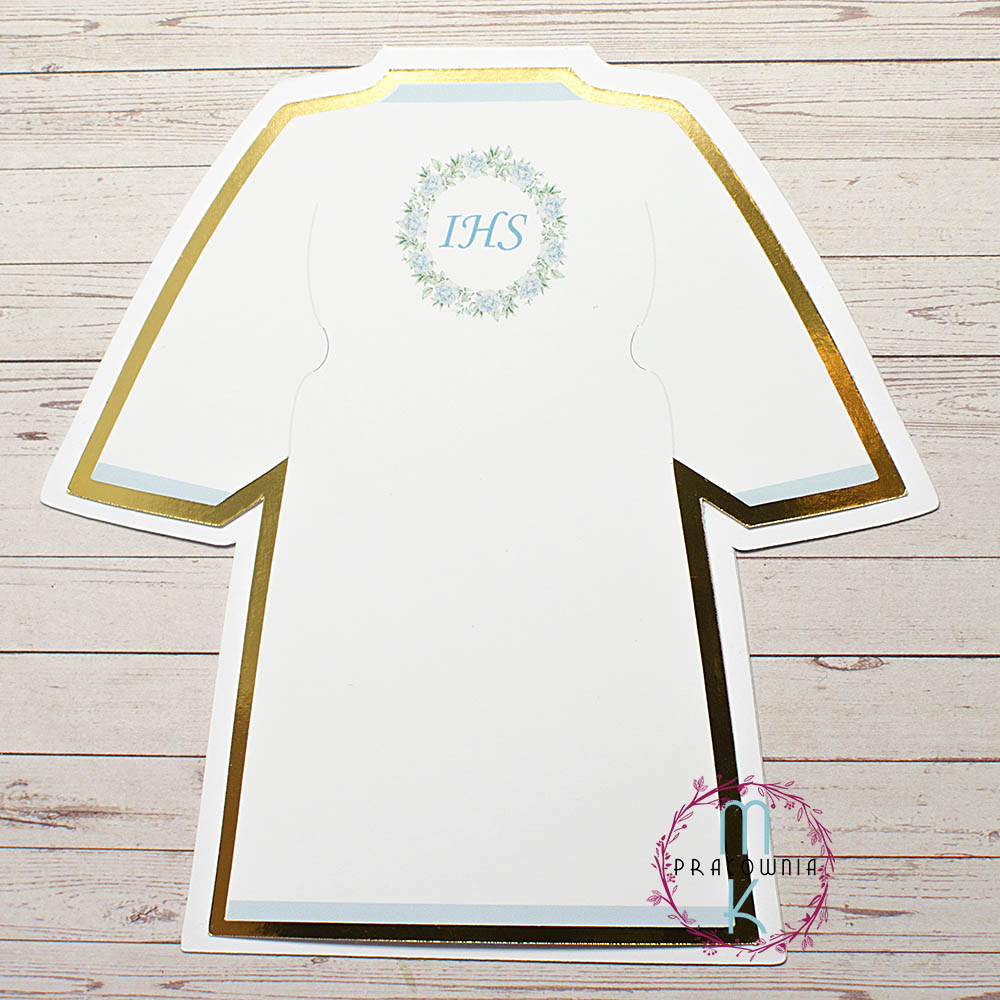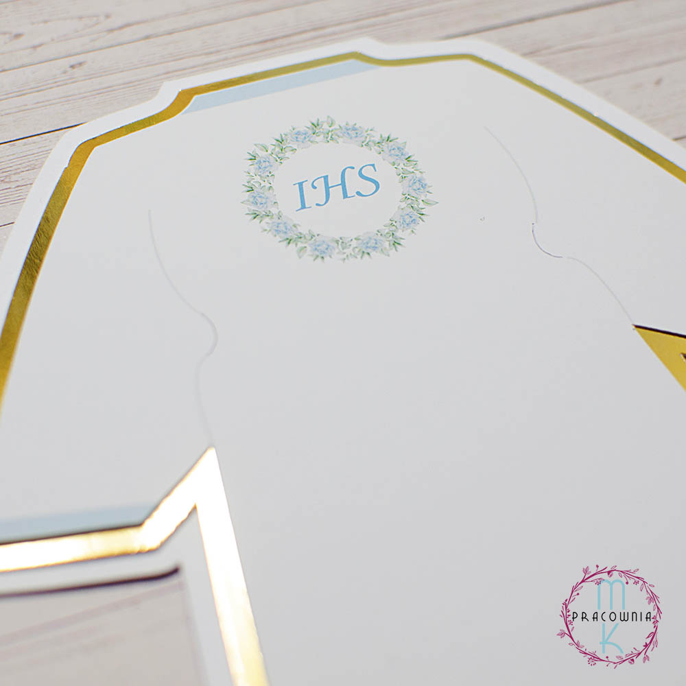 Baza alba komunia święta – lustrzane złoto i niebieski wianek