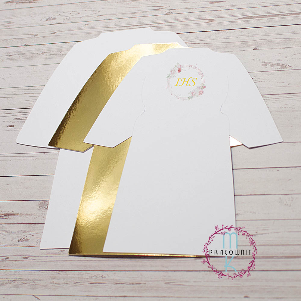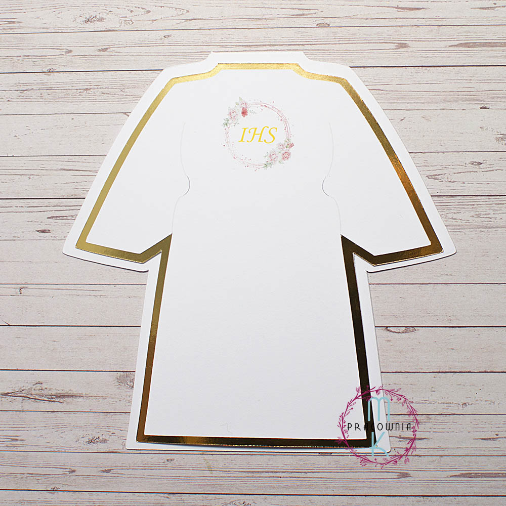 Baza alba komunia święta – lustrzane złoto i różowy wianek02