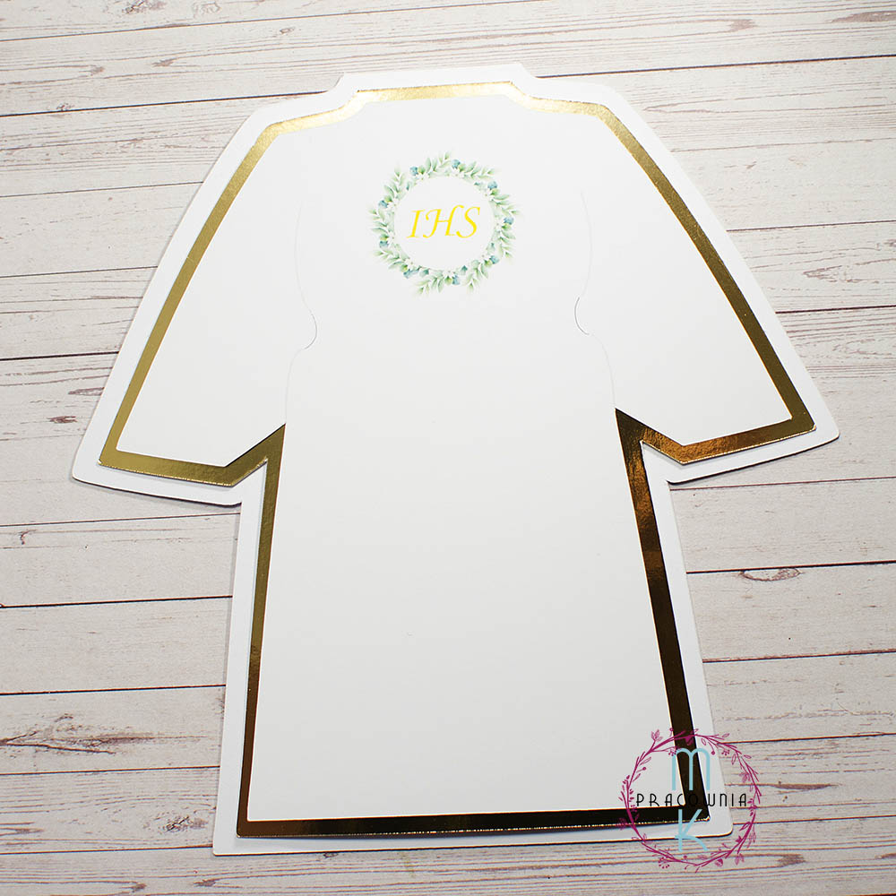 Baza alba komunia święta – lustrzane złoto i zielony wianek02