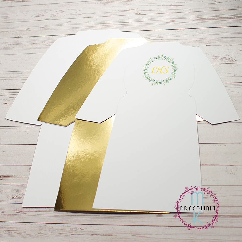 - W zestawie (baza + 2 warstwy) z bazą otrzymasz dodatkowy papier lustrzane złoto, który jest pomniejszony od bazy oraz biały papier fotograficzny matowy z nadrukiem, który jest pomniejszony od lustrzanego papieru, dzięki czemu powstają warstwy