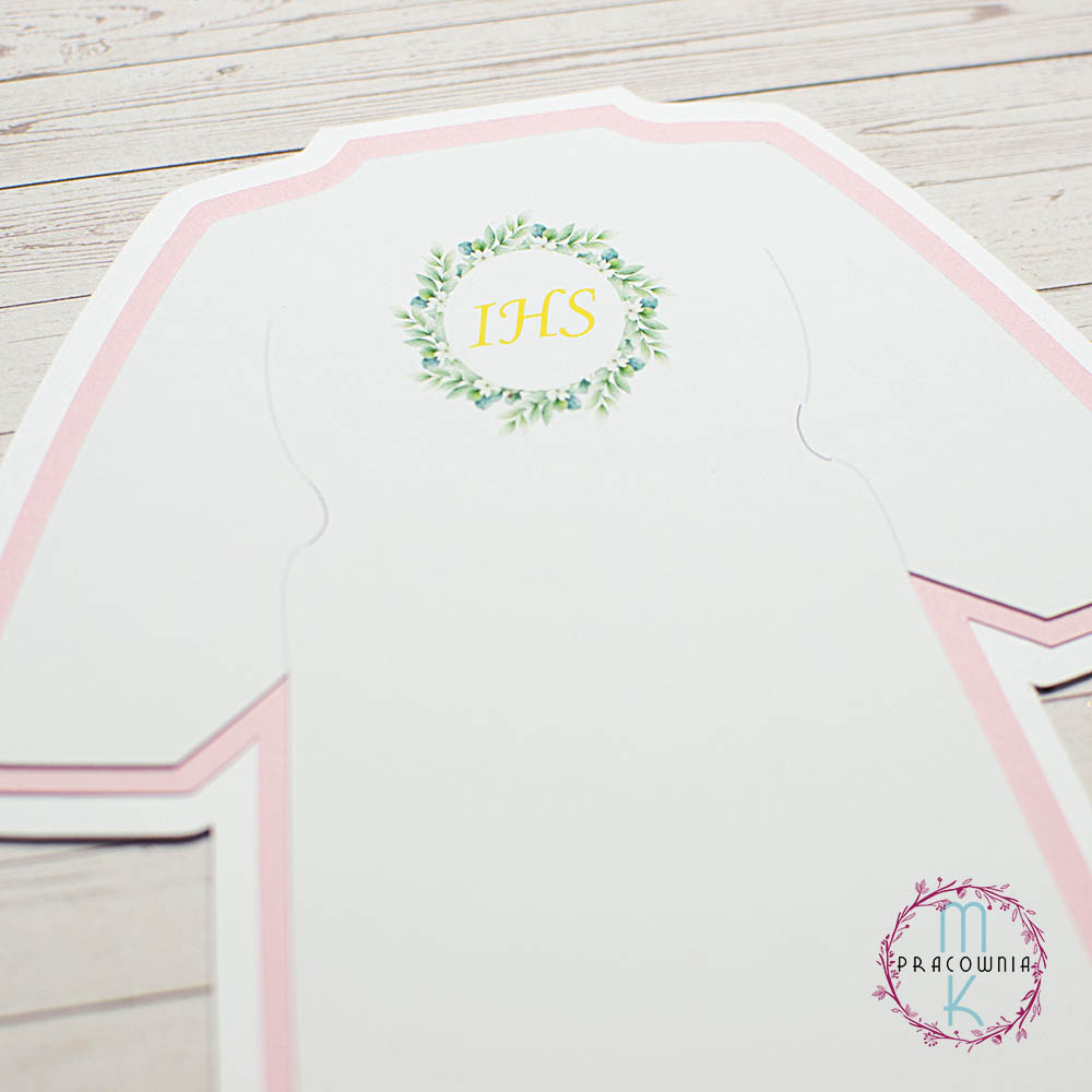 Baza alba komunia święta – różowy i zielony wianek