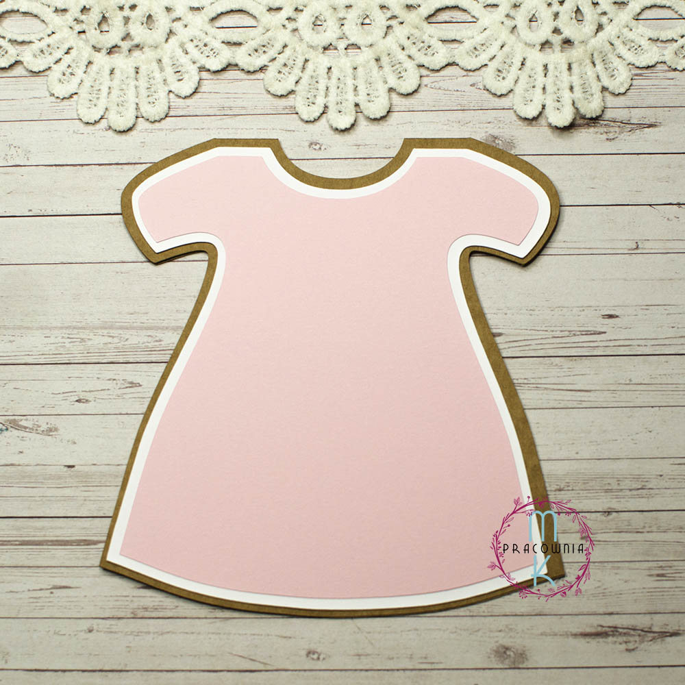 - W zestawie z bazą otrzymasz dodatkowo 2 warstwy! papier biały (gramatura 250) i warstwa różowa (gramatura 180) – w kształcie sukienki, który jest pomniejszony od bazy, dzięki czemu Twoja praca będzie bardziej przestrzenna.