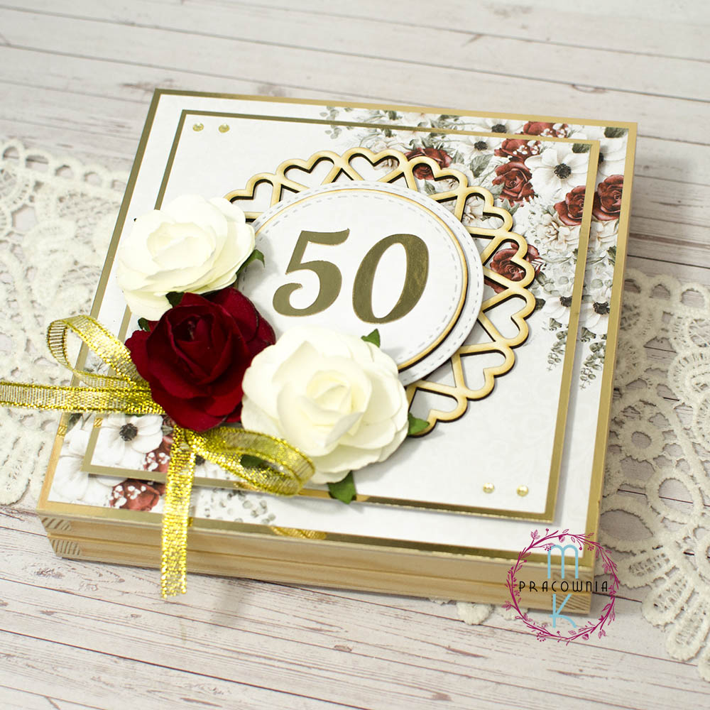 Personalizacja – możliwość umieszczenia indywidualnych życzeń i dedykacji oraz zdjęcia. Jeśli nie ma być zdjęcia to umieszczam grafiki nawiązujące do rocznicy ślubu. Pudełko wykonam na dowolną rocznicę ślubu