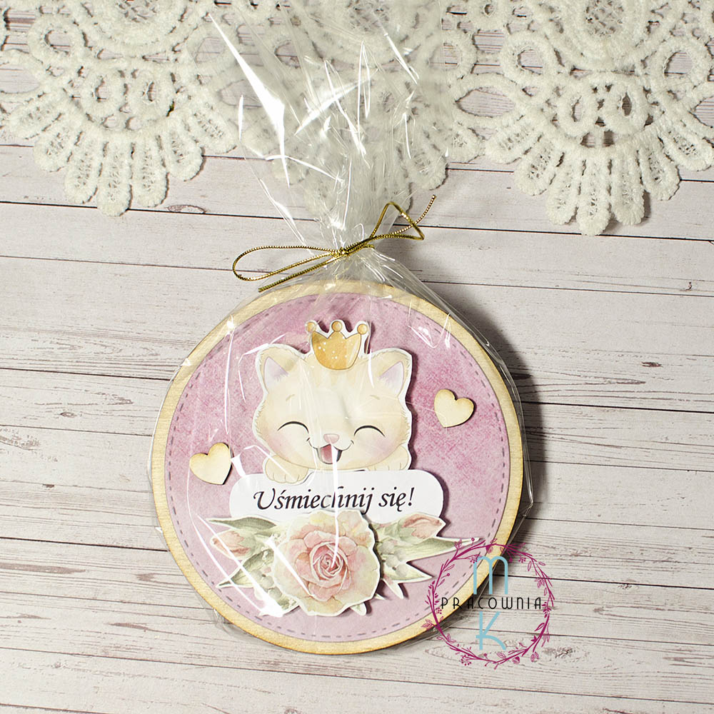 Dodaj odrobinę pozytywnej energii do swojego otoczenia! Ten uroczy magnes o średnicy 10 cm przedstawia stylową ilustrację kotka w koronie, który dumnie trzyma motywacyjny napis „Uśmiechnij Się”. To idealny sposób, by każdego dnia przypominać sobie i bliskim o sile uśmiechu!