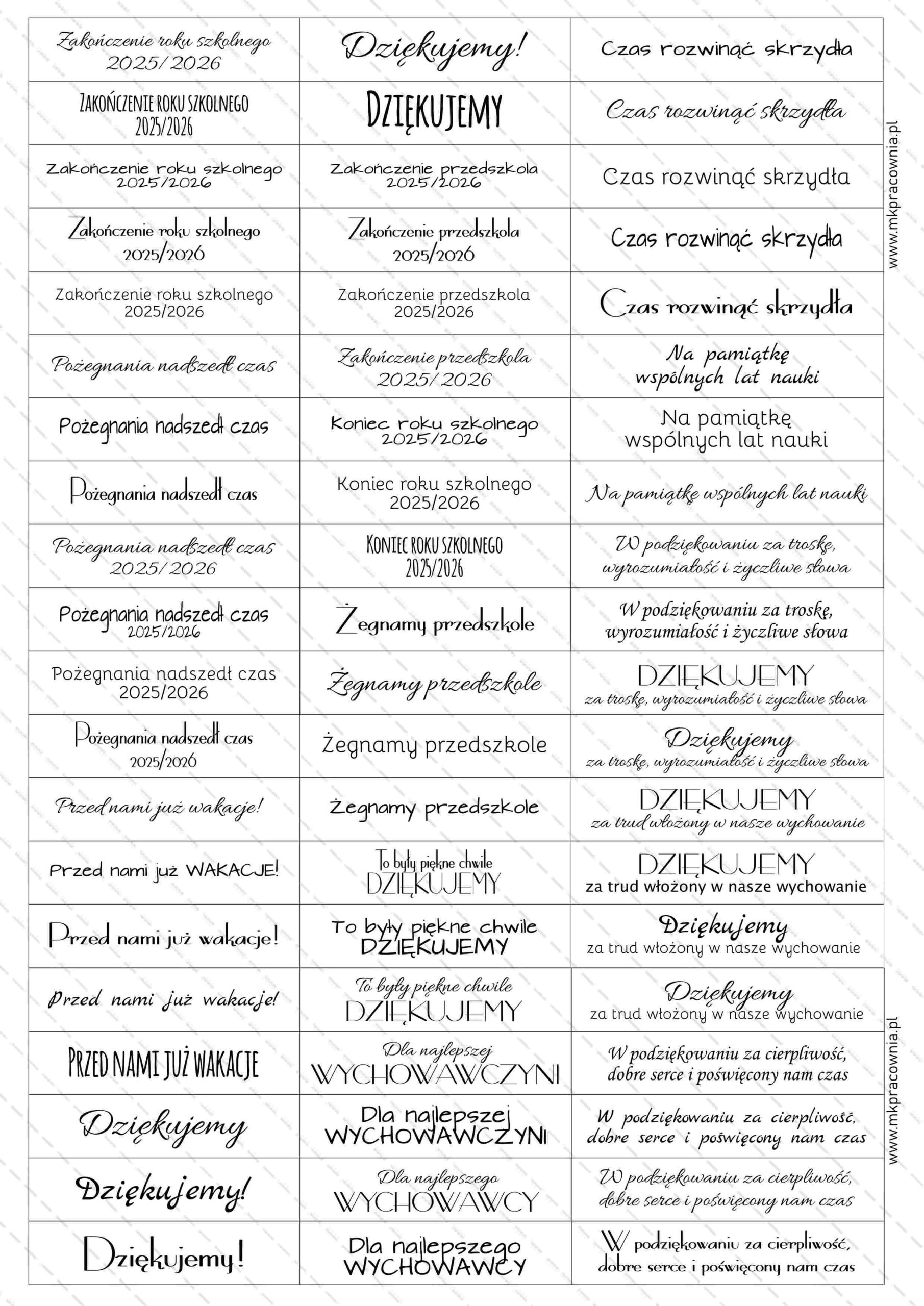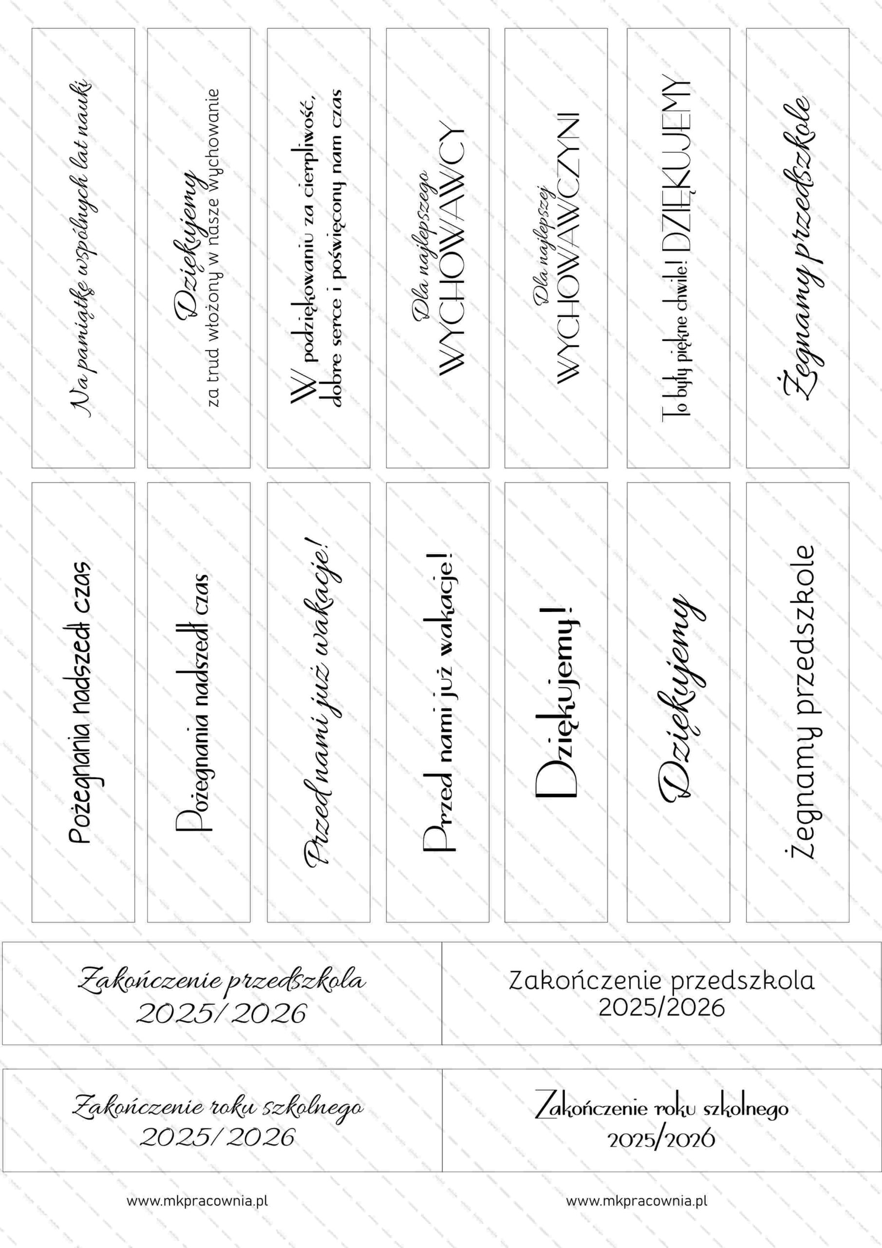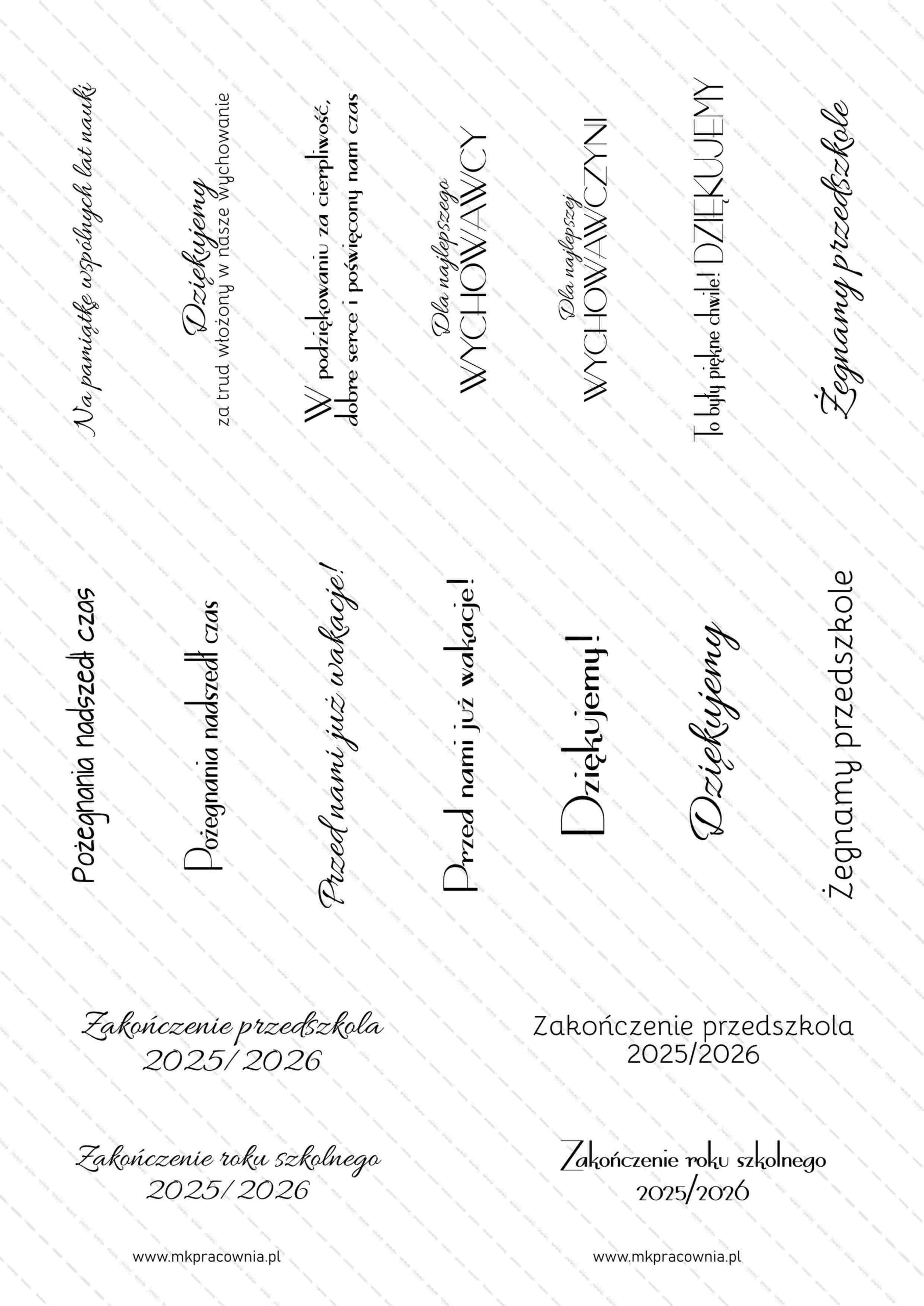 - Arkusz grafik do samodzielnego wycinania – napisy na zakończenie szkoły i przedszkola