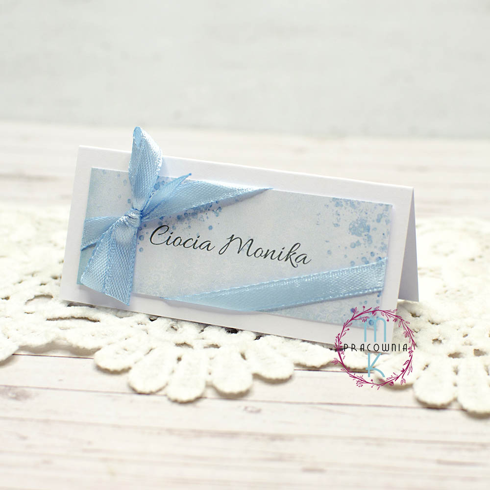 - Winietki są wykonane z wysokiej jakości papieru o gramaturze 250 z z przewiązaną niebieską wstążką
