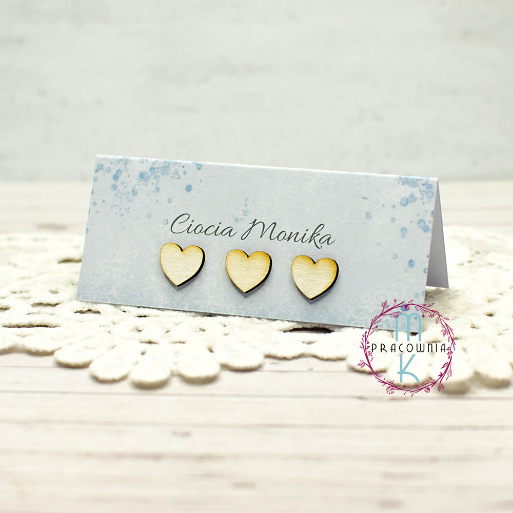 Niebieskie winietki z serduszkami na stół