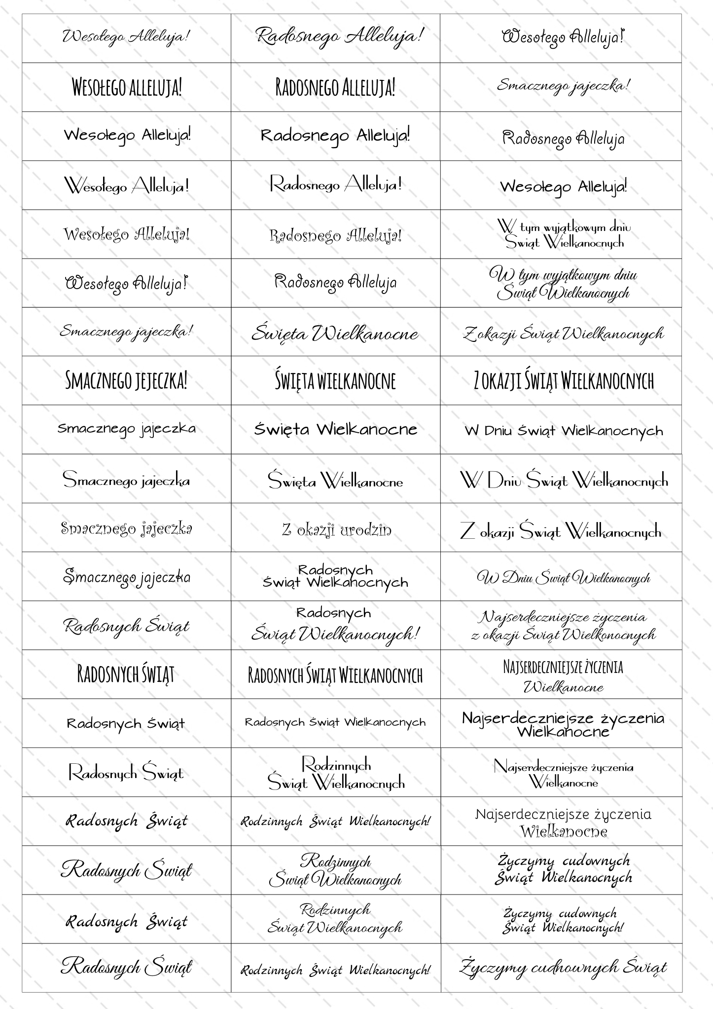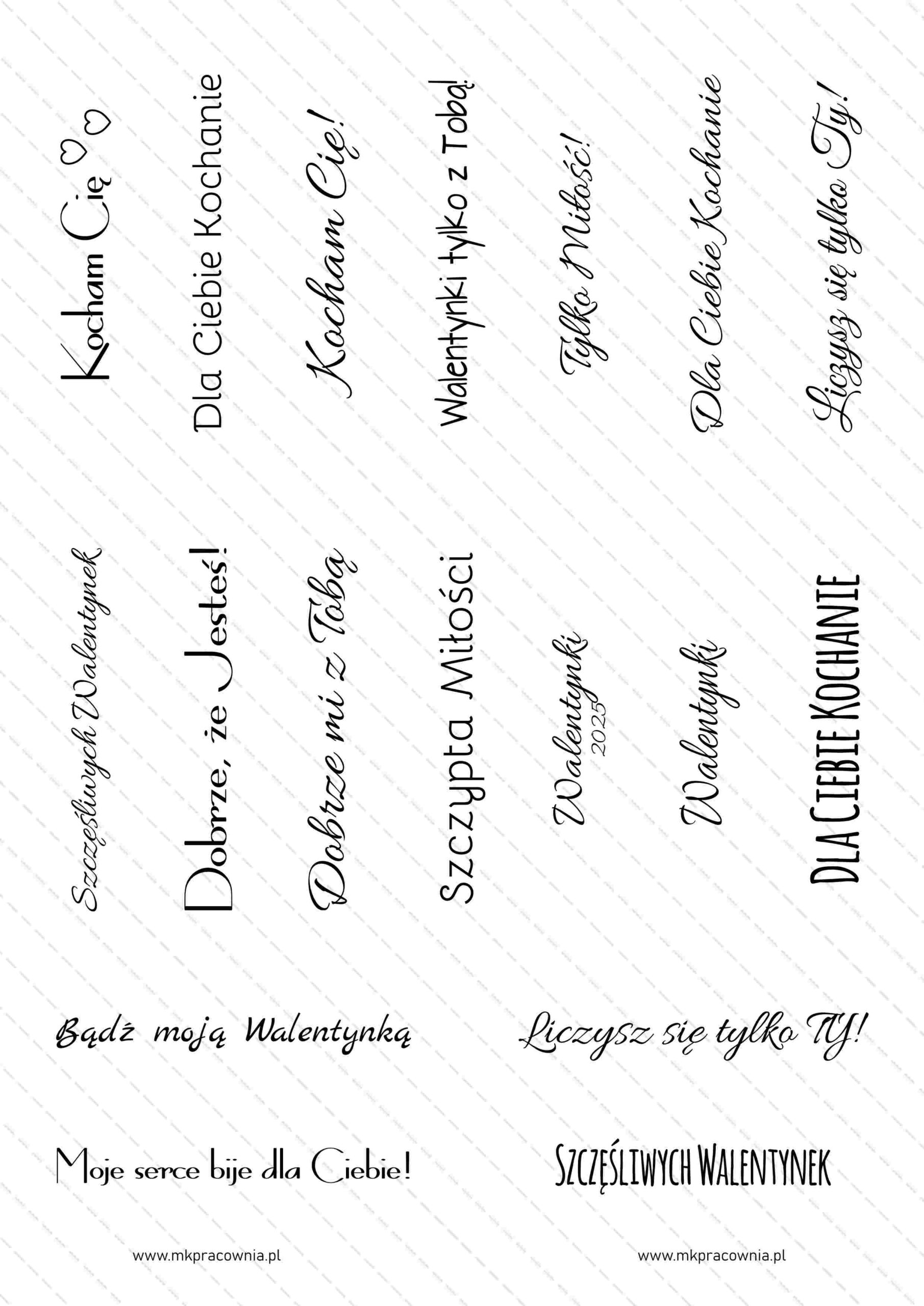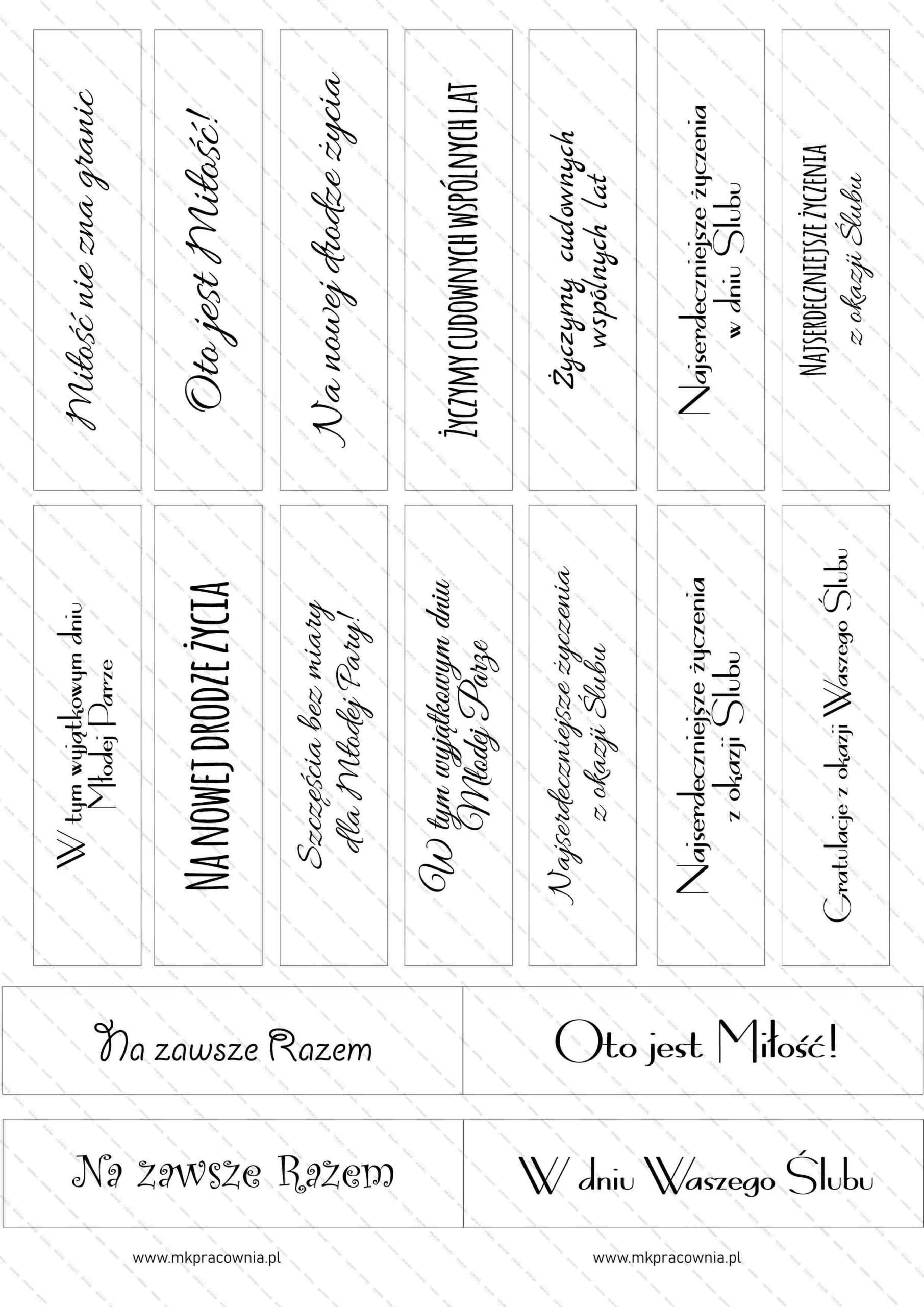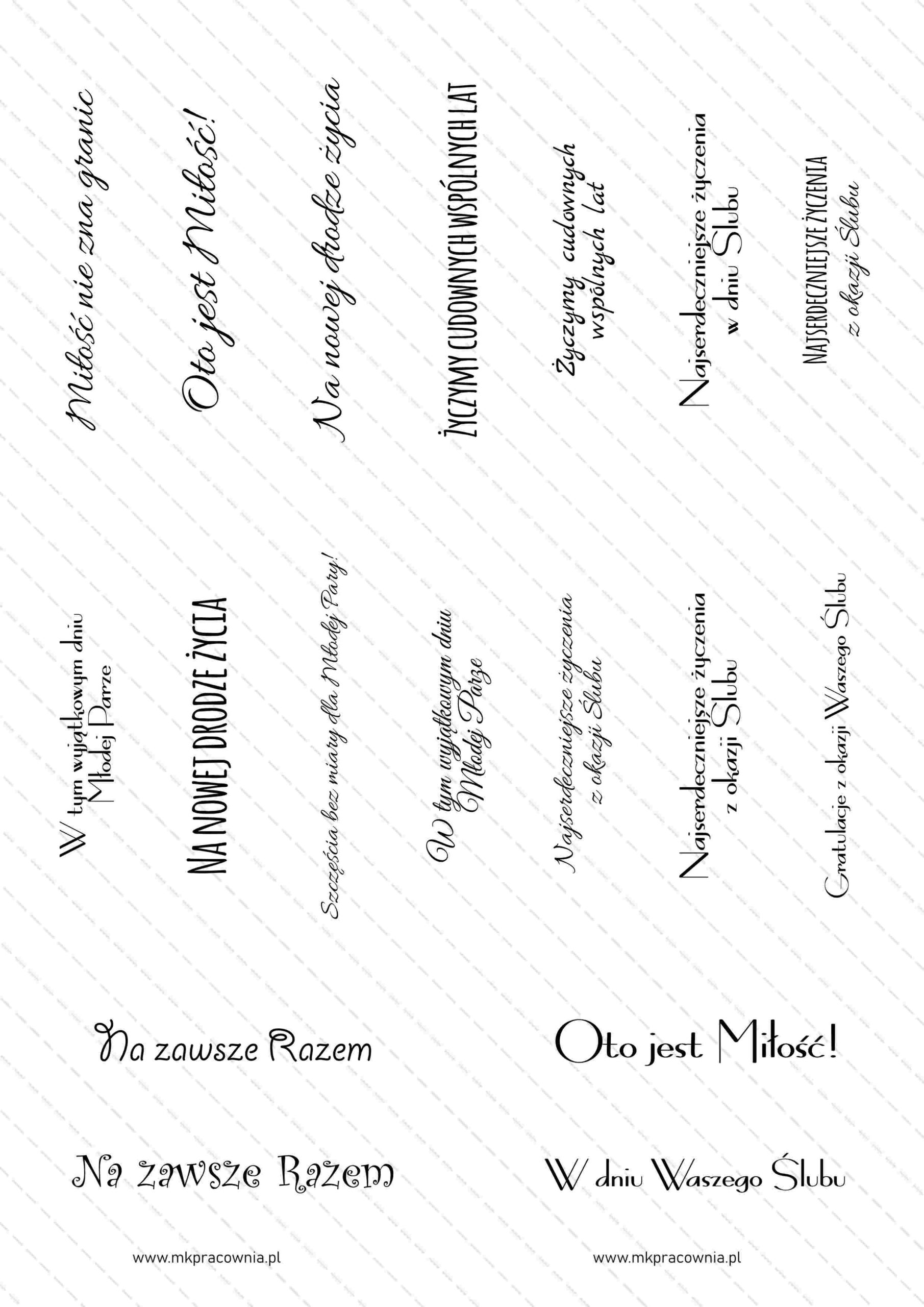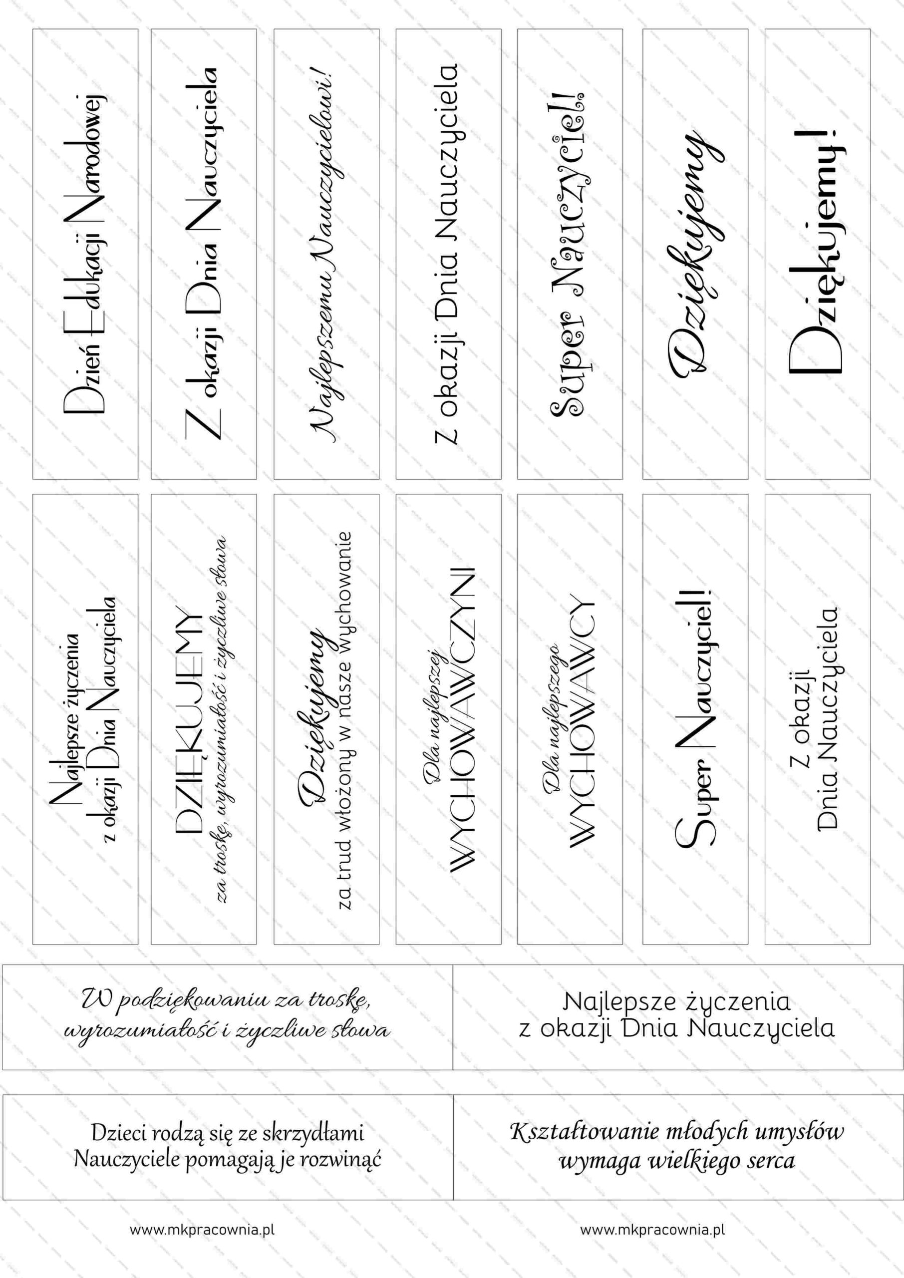 - Arkusz napisów do samodzielnego wydruku – napisy na urodziny\imieniny, chrzest, komunię świętą, Boże Narodzenie, Święta Wielkanocne, Dzień Babci i Dziadka, Dzień Matki i Ojca, Dzień Nauczyciela, Rocznicę Ślubu, z okazji Ślubu, Walentynki, Zakończenie szkoły/przedszkola, napisy Zaproszenie na Komunię Świętą – NAPISY na 12 różnych okazji