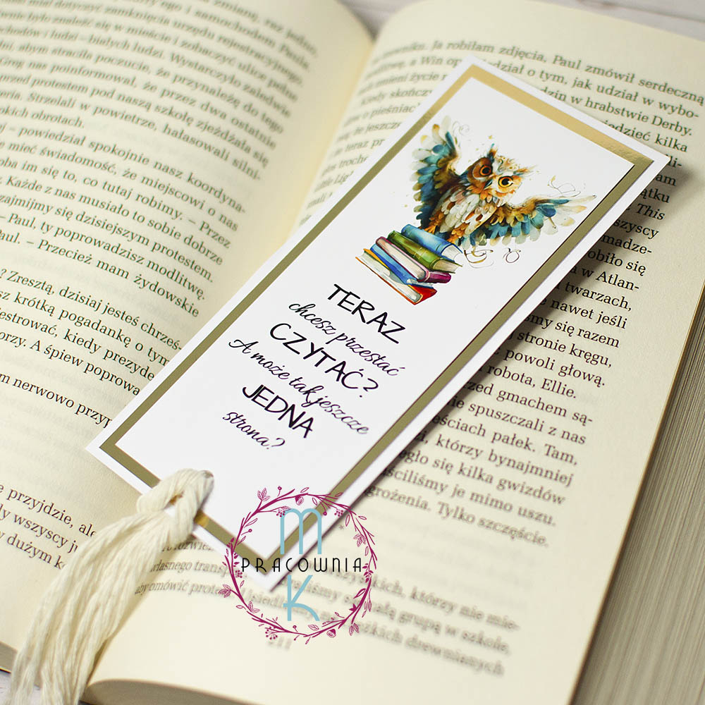 - Zakładka do książki: Zakładka do książki to praktyczny dodatek. Zakładkę wykonałam z wysokiej jakości papieru o gramaturze 300 i ozdobiona jest również motywem sowy oraz cytatem, co dodaje jej uroku.