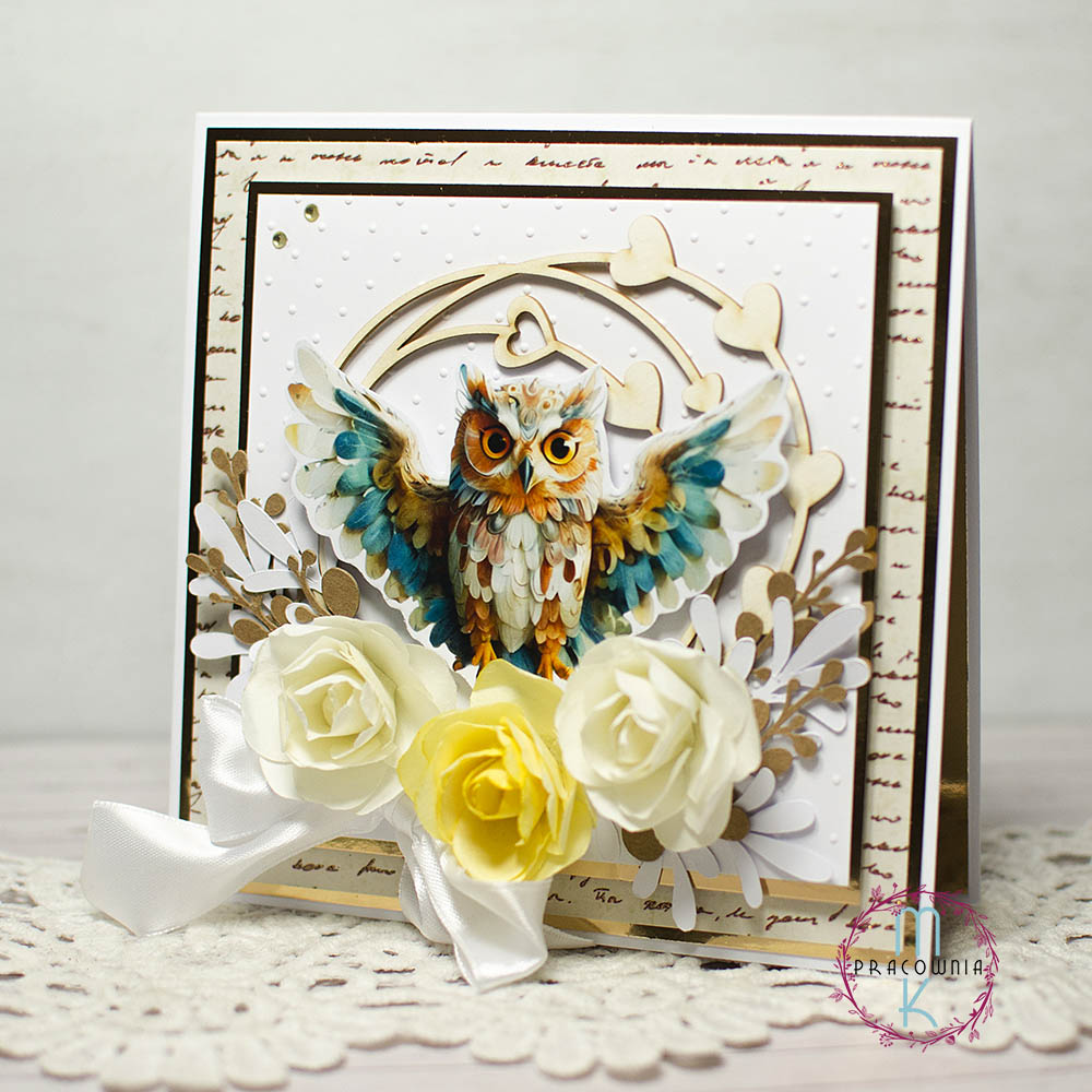 - Kartka okolicznościowa: W zestawie znajduje się pięknie zdobiona kartka okolicznościowa z motywem sowy. W środku kartki możesz umieścić osobiste życzenia lub słowa wsparcia. Po zamówieniu kartki wysyłam osobnego emaila z wyborem życzeń. Można mi również przesłać własne. Ponadto, kartka jest wykonana z wysokiej jakości papieru o gramaturze 300, co dodaje jej elegancji i trwałości. Wielkość kartki ok 21 x 10,5 cm. Kartę ozdabiają kwiatki 3D co nadaje jej przestrzenności