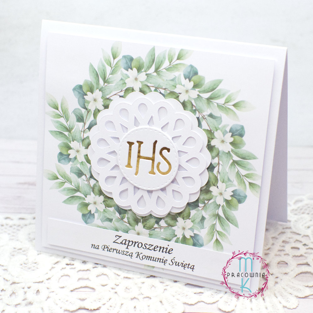 Zaproszenia na Komunię wielowarstwowe z wiankiem