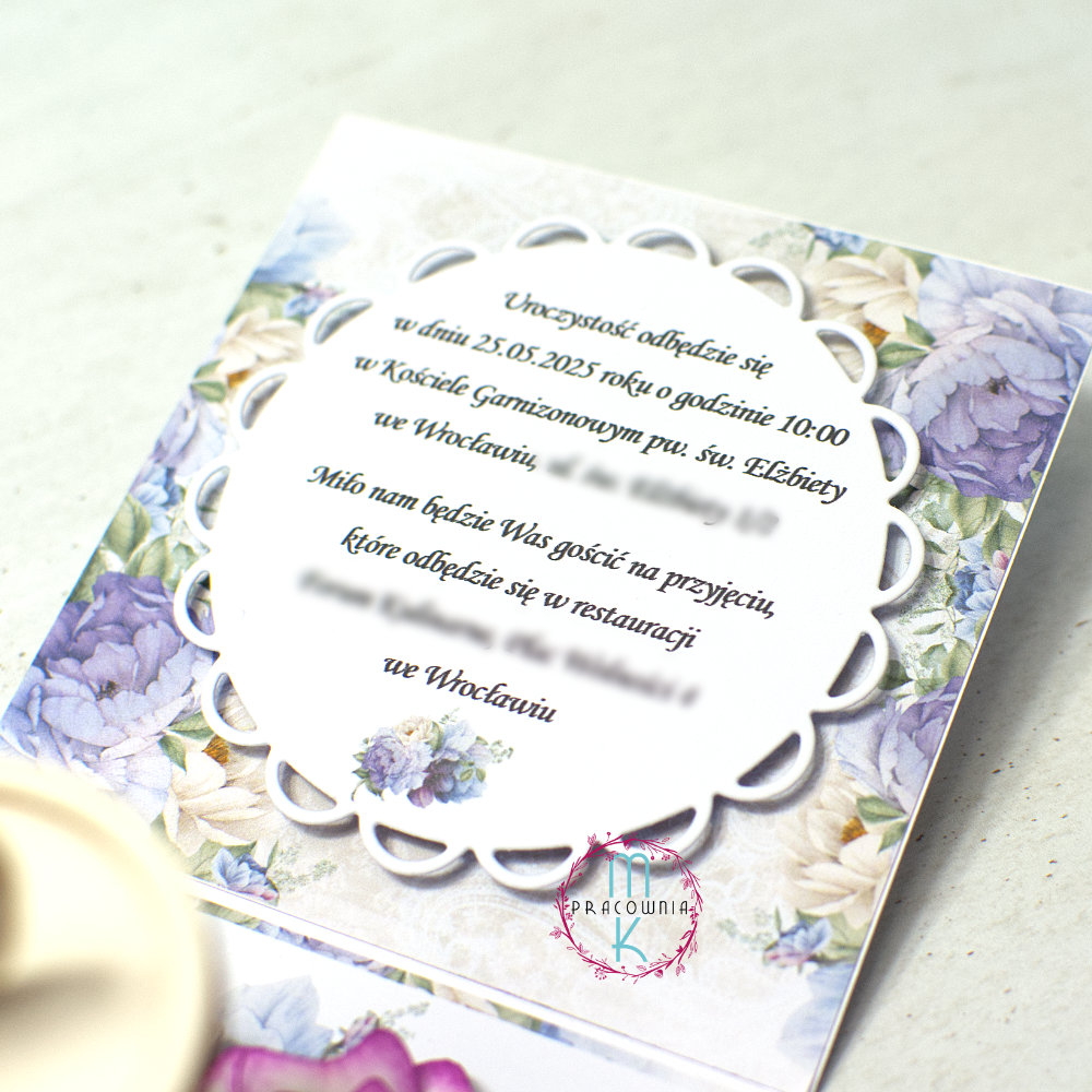 - Cena obejmuje ozdobione pudełko 3 D oraz pełną personalizację zaproszenia. Treść zaproszenia jest uzgadniana po złożeniu zamówienia.