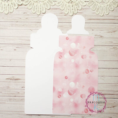 4.79złBaza kartki wykonana z papieru białego o gramaturze 250. Rozmiar : ok 21 x 9,7 cm Cena obejmuje bazę w kształcie butelki dziecięcej Baza kartki otwiera się w bok W zestawie z bazą otrzymasz dodatkowy różowy papier, który jest pomniejszony od bazy dzięki czemu tworzy dodatkową warstwę W galerii zdjęć przykładowa inspiracja jak można ozdobić…