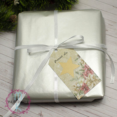 9.78złZawieszki / tagi na prezent gwiazdkowy w formie zdrapki Pod zdrapką znajduje się imię osoby, która ma otrzymać prezent. Świetna zabawa dla dzieci i nie tylko! Zawieszka / tag ma wielkość ok 10 x 5 cm Cena obejmuje 7 szt zawieszek ze złotym sznureczkiem UWAGA! Kolory/odcienie widoczne na zdjęciach mogą różnić się od rzeczywistych. Jest…