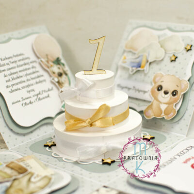 39.50złWielkość kartki ok 14,6 x 14,2 cm Kartka idealna zarówno z okazji narodzin dziecka jak i jego urodzin. Możliwość dodania liczby jeśli kartka będzie na urodziny. Kartka na zamówienie dlatego, może różnić się zwierzątkami umieszczonymi na kartce. Kartka pomimo, że do koperty to wszystkie elementy znajdujące się na kartce zostały podniesione na lekki dystans co…