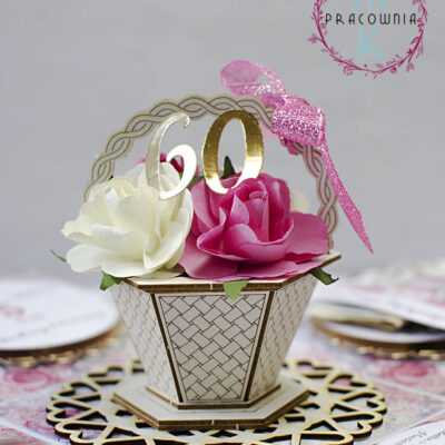 99.89złPudełko o wymiarach ok: 10 x 10 x 10 cm wykonane na wysokiej jakości papieru o gramaturze 350 Gdy ściągniemy wieczko pudełka – wówczas boczne ścianki opadają ukazując tym samym treść + element 3 D będący koszem z kwiatami. Jeśli mam umieścić liczbę na koszu to proszę o taką informację. Na bocznych ściankach standardowo znajdują…